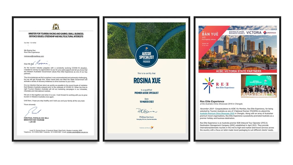 Thank you Rosina and Ros Elite Experience, for your excellent services to our 75yrs VIP guests. Your careful planning and execution led to a successful month-long journey in Australia, resulting in great feedback from our satisfied clients. Your itinerary design and ground services created a "home away from home" experience, enabling smooth enjoyment of various landscapes. The journey left such a positive impression that our clients purchased two apartments in Melbourne and requested our assistance with their third-generation's immigration. Ros Elite Experience is a professional and meticulous travel agency, surpassing other Australian operators.